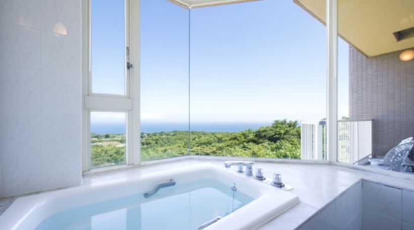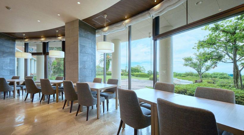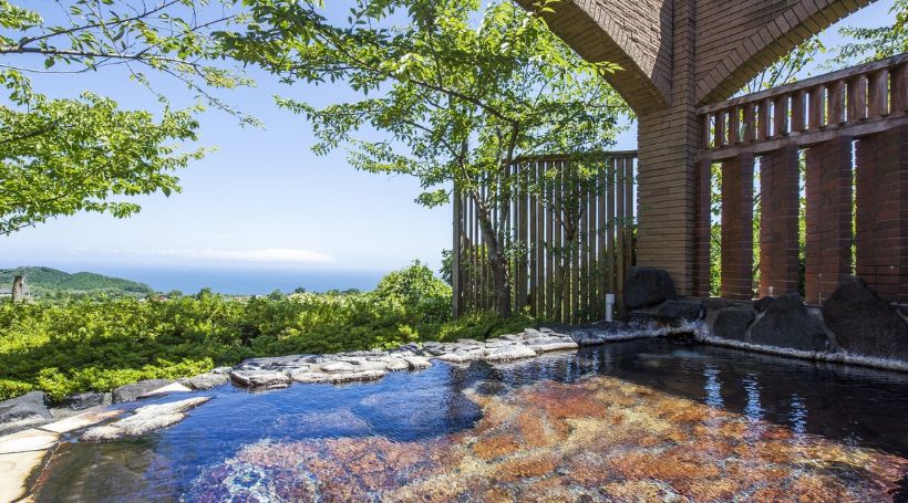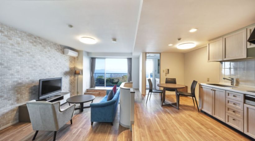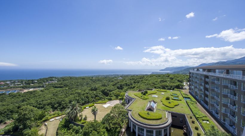 客室は2LDK以上の広々したスペースにリビングダイニングにキッチン完備!自家源泉かけ流しの露天風呂・大浴場・室内温水プールが充実しており、3世代でお楽しみいただけます。大島と相模灘が一望できるレストランIZUMIでは朝食・夕食のブッフェをご提供。伊豆高原ならではの食材を使ったひと皿から定番のメニューまで、心ゆくまで味わえます。