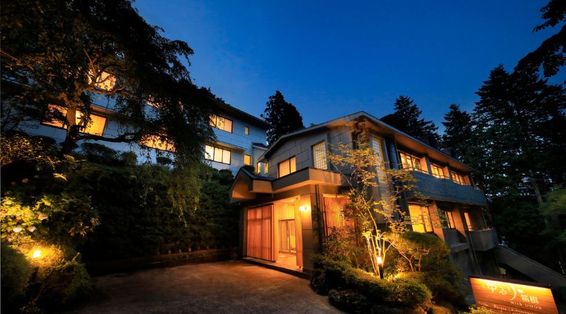 新宿駅(小田急・約1時間30分)=箱根湯本駅(箱根登山鉄道・約38分)~強羅駅(約8分)~上強羅駅(徒歩1分)=当館