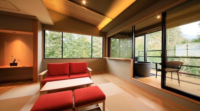 箱根仙石原の別荘地に佇む大人の時間を愉しむ宿“箱根風雅”は大人だけが愉しめる静かな宿です。スタイリッシュな空間で、ライブキッチンから提供される風雅流“創作和洋会席” を五感で味わいながら、強羅温泉の美湯に浸り、美食に酔いしれ、暖炉が象徴的なロビーラウンジで優雅なひと時をお過ごしください。