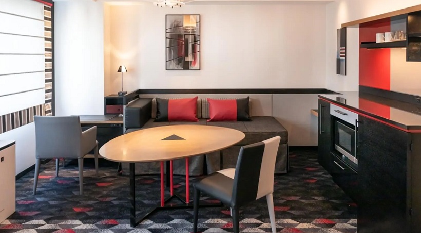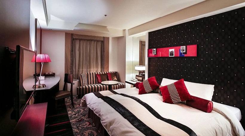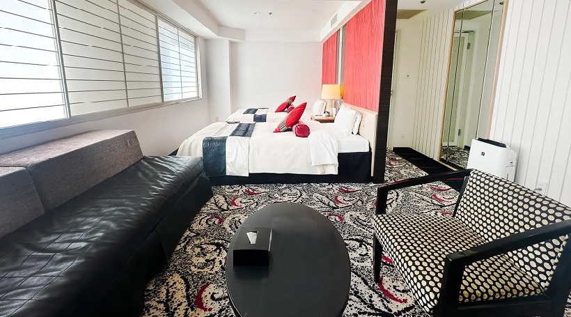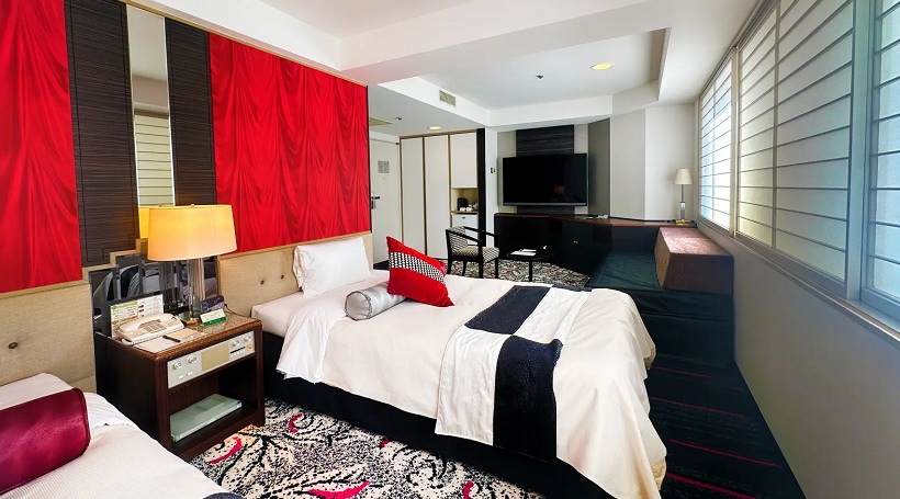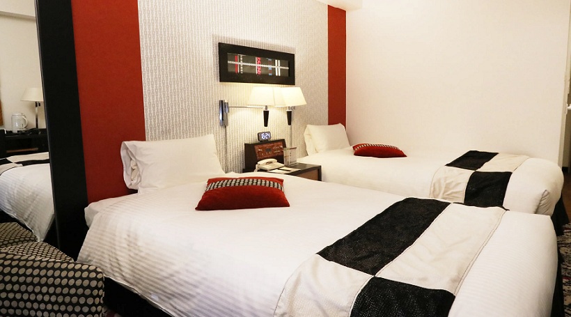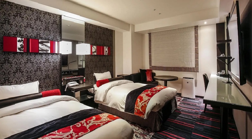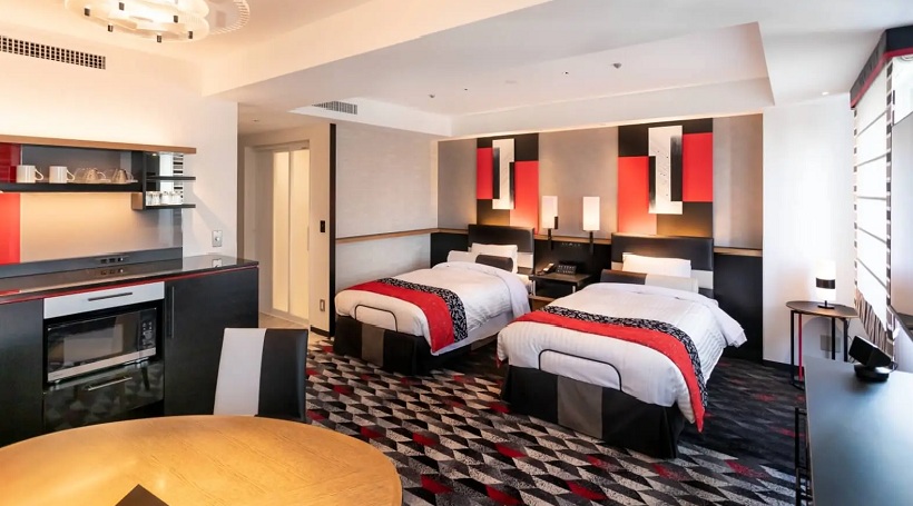 赤と黒を基調としたモダンなインテリアで落ち着いた雰囲気を演出しています。 2部屋が繋がったコネクトルームのご利用により最大6名さまのグループでご利用いただけます。
