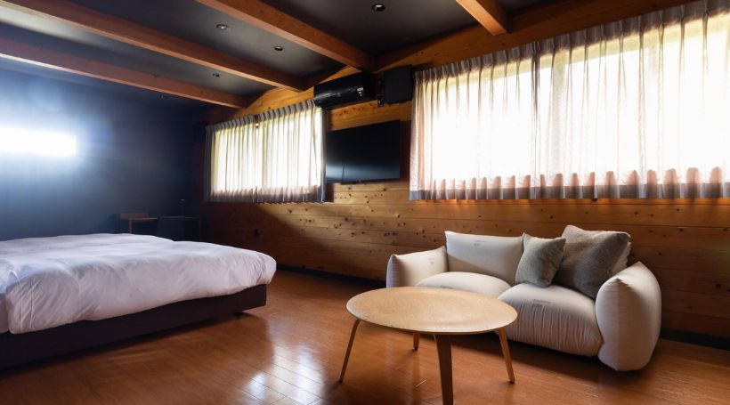 富士山の麓・河口湖エリアに佇む、一棟貸しタイプのコテージです。