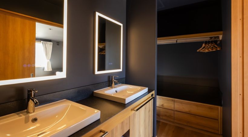 当ルームは1棟貸切タイプではなく、1階にモダンスイート1部屋、2階にモダンツイン2部屋をそれぞれのお客様がご利用いただくスタイルとなります。玄関のみ共用となりますが、1部屋ごとに独立した鍵付きのお部屋(バス・トイレ付)をご用意しておりますのでご安心ください。