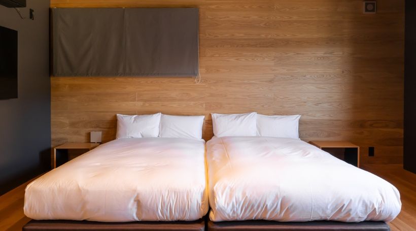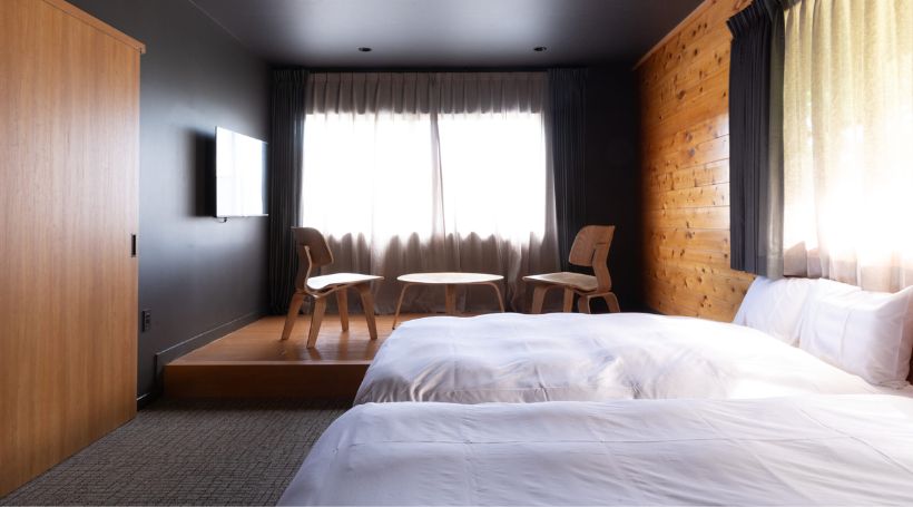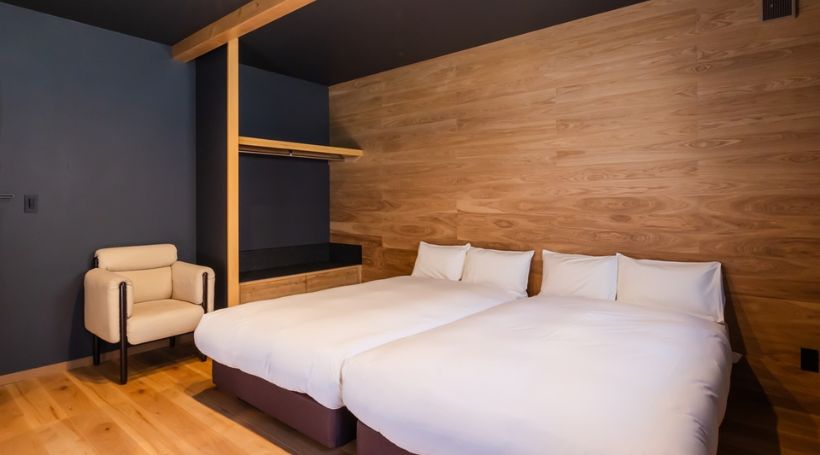 ツインルーム(ダブルサイズ/布団貸出可)・専用室内サウナ・水風呂|ペット不可の客室です。