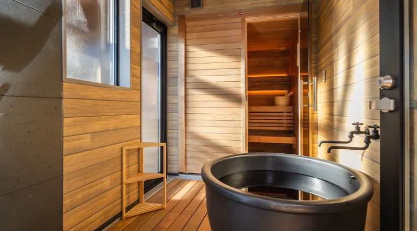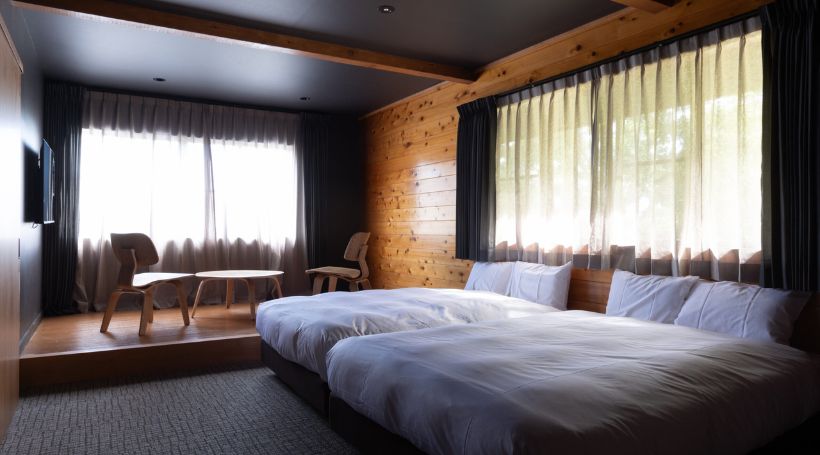 ツインルーム(ダブルサイズ/布団貸出可)・プライベートバレルサウナ・水風呂|ペット不可の客室です。