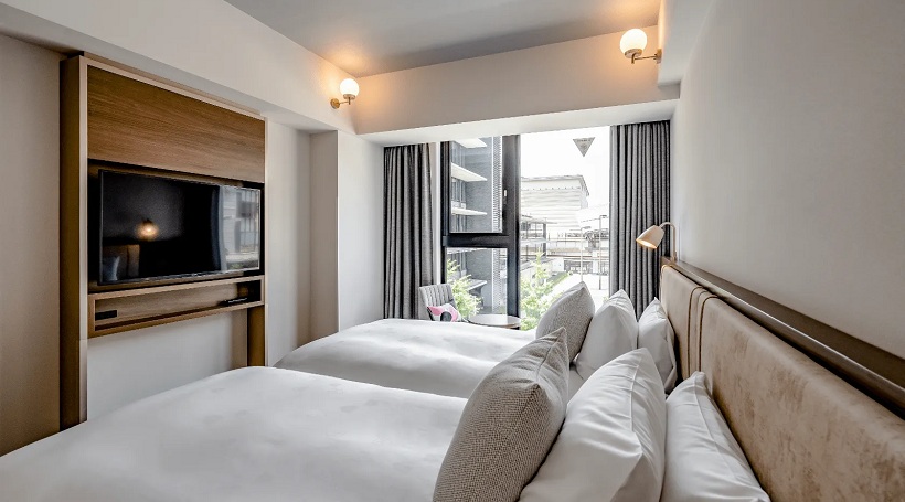 その「コントラスト」を、木と黒のバイカラーデザインで体現した「CANVASラウンジ」は、ゲストが時に仕事をし、時にあそびながら、ホテルのスタッフや地元の人々とつながるソーシャルスペース。かつて平安の貴族たちが楽しんだ蹴鞠は卓球に、詠む歌はDJのビートに。伝統は形を変えながら、その「CONNECT(つながる)」の精神が、いまも息づいています。