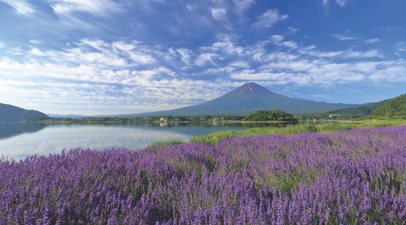 裾野まで広がる雄大な富士とラベンダーの競演